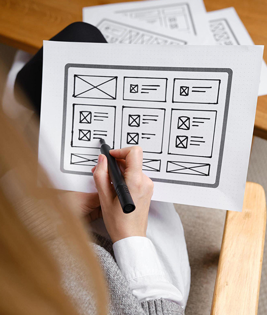 يتم تحديد أفضل تجربة للعميل داخل النظام و تصميم الواجهات الأساسية للموقع بما يتناسب.